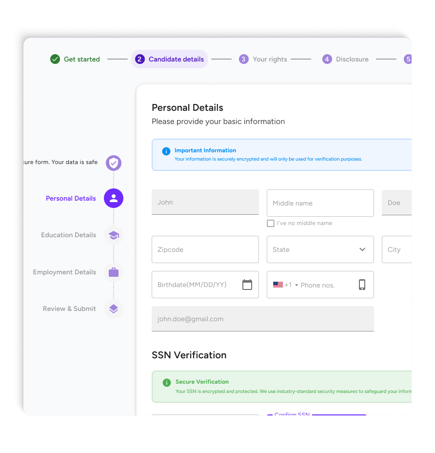 Reduce time-to-hire, mitigate hiring risks, and ensure compliance while minimizing HR efforts.